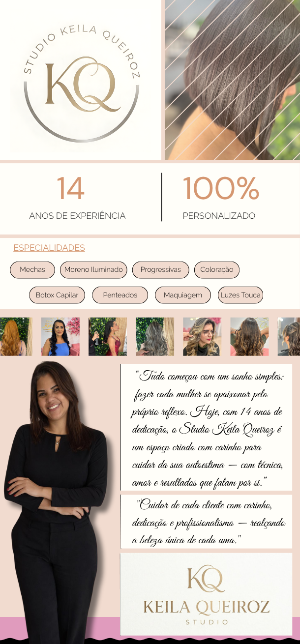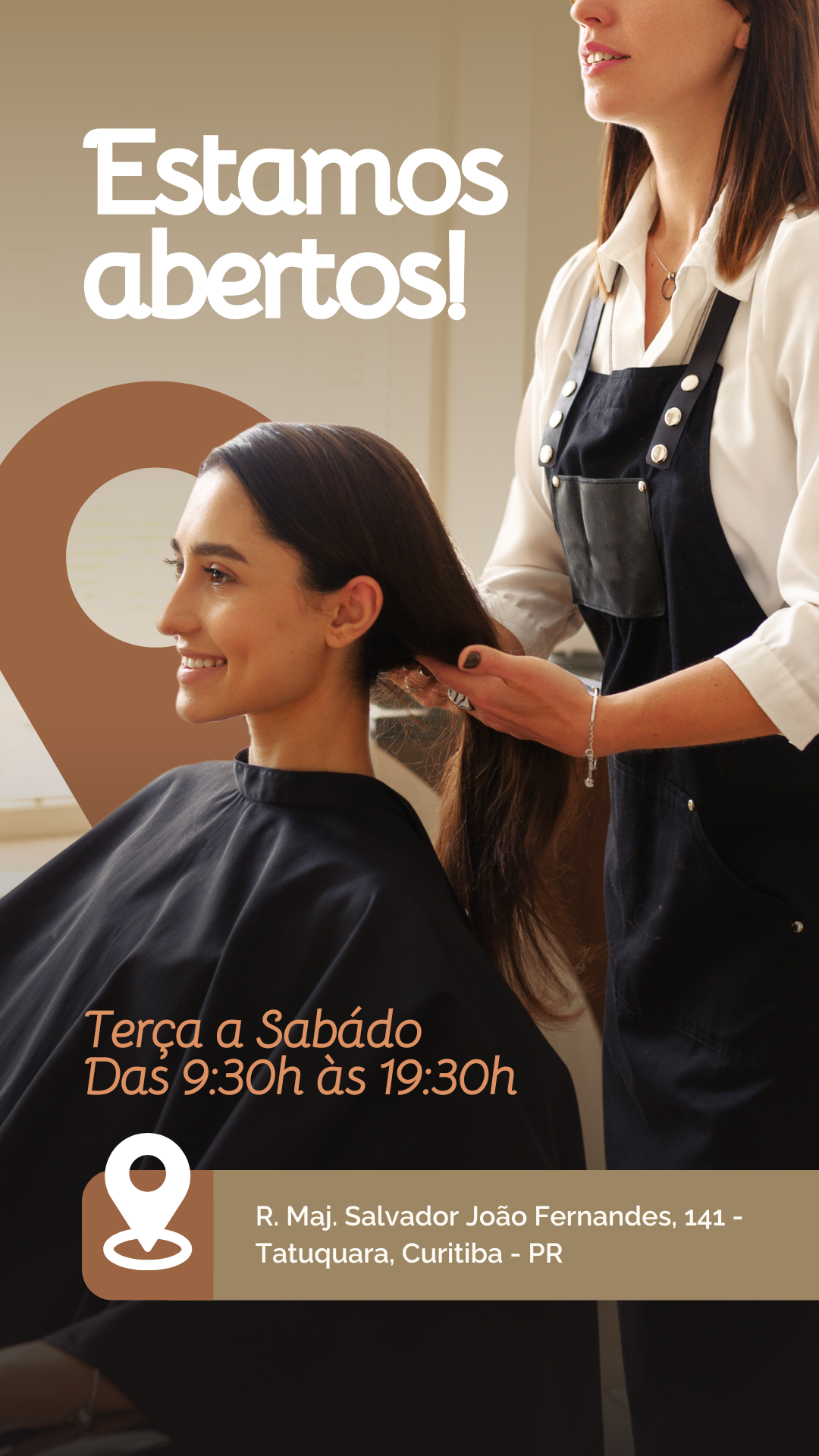 Sela os fios, reduz volume e adiciona brilho. Valor inicial de R$ 140, podendo chegar até R$ 280 conforme avaliação.